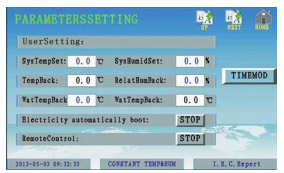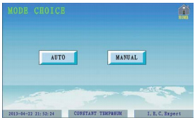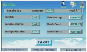 當(dāng)選擇了手動(dòng)模式后系統(tǒng)會(huì)按選定的模式運(yùn)行。選定手動(dòng)模式也要設(shè)定目標(biāo)參數(shù)。當(dāng)選定要首先開啟的模式后,系統(tǒng)會(huì)先運(yùn)行選定的模式。運(yùn)行一段時(shí)間檢測達(dá)到目標(biāo)后會(huì)自動(dòng)按設(shè)定的參數(shù)運(yùn)行。