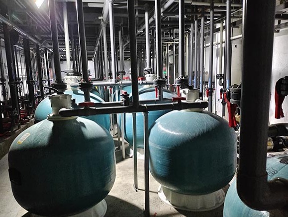 開啟設(shè)備前先確認(rèn)設(shè)備上閥門是否在正確位置、砂缸頭是否在正常過濾循環(huán)位置,是否具備開啟設(shè)備條件。確認(rèn)電壓、設(shè)備正常后合上總空開、然后關(guān)閉重復(fù)三次后無異?,F(xiàn)象方可合閘,再依次打開其他設(shè)備空開電源。