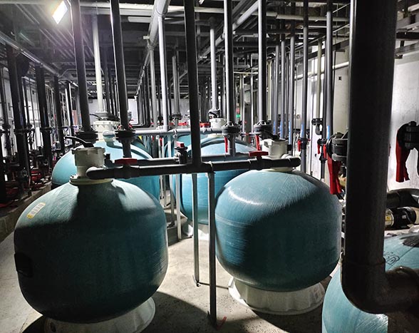 泳池水處理過濾砂缸設備是泳池過濾系統(tǒng)的核心部件之一,是常見的泳池過濾設備,泳池水通過層層石英砂的物理截流過濾,將泳池水中的污染物質去除,提供清澈、健康、干凈的水質環(huán)境。