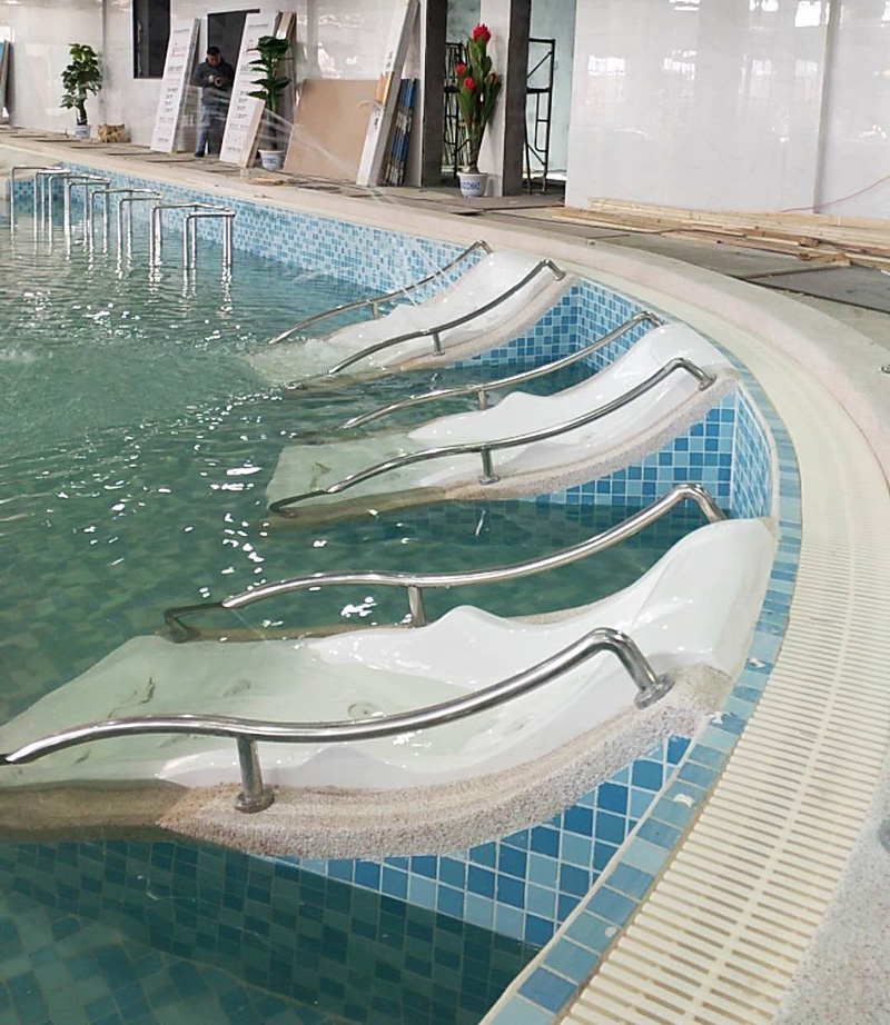 江西吉安99體育園的工程比較大,一共有6個(gè)池子和3個(gè)蒸房,其中有2個(gè)成人池,2個(gè)兒童池,1個(gè)戲水池和1個(gè)SPA池,1個(gè)干汗蒸房,1個(gè)濕汗蒸房,1個(gè)蒸汽房。經(jīng)過(guò)專業(yè)施工人員的辛勤勞作,目前,已基本竣工。建好的圖片如下: